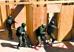 1月9日,在也门首都萨那附近的山区,也门反恐部队士兵在进行应对绑架的演练。