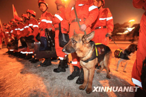 1月13日,中国国际救援队队员在首都机场登机,前往发生强烈地震的海地执行救援任务。新华社记者邢广利 摄