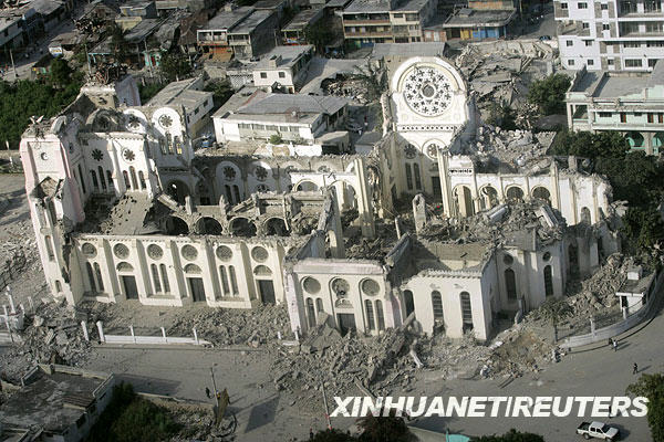 1月14日,海地首都太子港的大教堂在地震中遭到严重损毁。海地当地时间12日下午发生强烈地震和多起余震,造成首都太子港大量房屋受损或倒塌,当地人士称地震可能造成数万人死亡。新华社/路透
