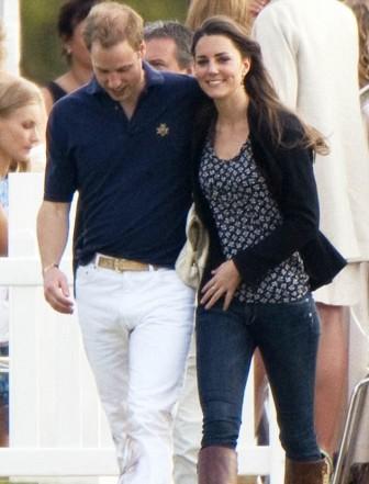 英国威廉王子揽着“准王妃”凯特.米德尔顿的肩膀,两人十分甜蜜