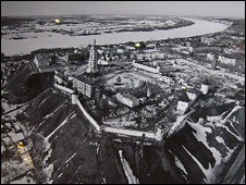 俄新社1月16日报道,天价照片是梅德韦杰夫从直升飞机上拍摄的,名为“托博尔斯克的克里姆林宫”。这幅黑白图片 反映了托博尔斯克克里姆林宫的全景。而普京去年同一拍卖会上拍卖的画作“花纹”拍出的价格为3100万卢布(约110万美元)。