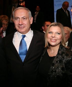 以色列总理内塔尼亚胡(左)与妻子萨拉(右)在一起