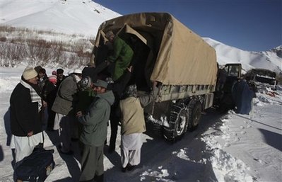 被大雪围困的阿富汗人9日成功获救进入军车。