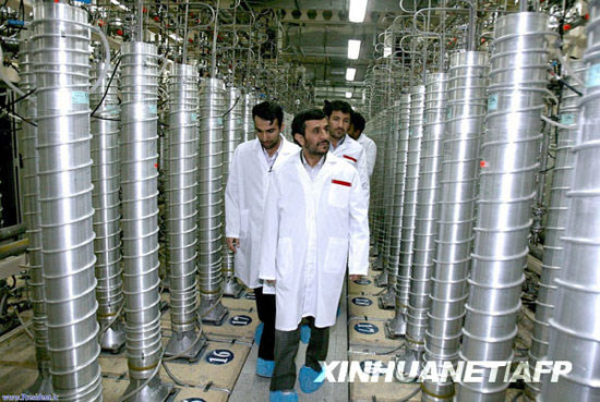 这张拍摄于2008年4月8日的资料照片显示的是伊朗总统艾哈迈迪-内贾德视察纳坦兹核设施。2月9日,伊朗在纳坦兹核设施开始生产纯度为20%的浓缩铀。 新华社/法新