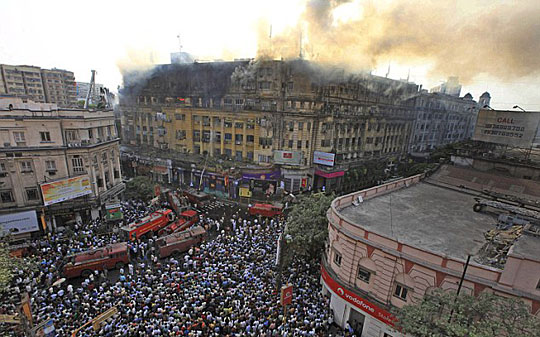 失火的是加尔各答标志性建筑斯蒂芬法院(Stephen Court),大火于当地时间23日下午2点15分爆发,消防人员到晚上10点半才控制住火势。