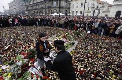 据香港《大公报》网站12日综合媒体报道,总统卡钦斯基在空难中丧生的消息传出后,波兰举国震惊和哀恸。波兰11日在华沙军人教堂和古城克拉科夫的瓦维尔宫举行悼念仪式,默哀两分钟。总统府所在的“皇家大道”上聚集了数千人,市民献上鲜花,点燃蜡烛,摇曳的烛光映照着一张张悲戚的脸。