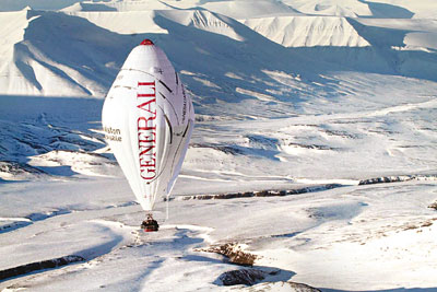 据香港《文汇报》12日报道,法国极地探险家艾蒂安前日完成人类史上首次乘坐热气球(图)飞越北极的探险之旅。艾蒂安上周一从挪威起飞,经过5天1小时30分,飞行了3130公里,途中遇过大风雪,最终在西伯利亚地区安全着陆。