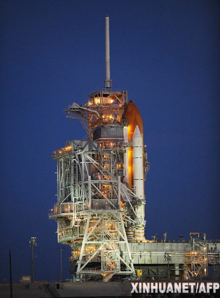 图为2010年4月3日,美国“发现”号航天飞机矗立在佛罗里达州肯尼迪航天中心发射台上。“发现”号航天飞机预计于美国东部时间4月5日6时21分(北京时间4月5日18时21分)发射升空,为国际空间站送去多功能后勤舱等设备。新华社/法新