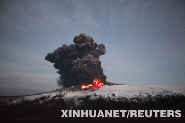4月17日,冰岛埃亚菲亚德拉冰盖火山持续喷发。冰岛南部火山日前再次喷发所产生的大量火山烟尘严重影响了欧洲地区的空中交通,导致多个国家机场关闭,大量航班被取消。新华社/路透