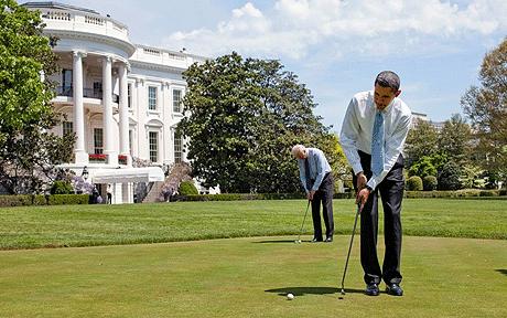 有媒体称,在入主白宫以来,奥巴马共打了32次高尔夫球,而这一数字竟然是前任乔治·布什的8倍。