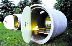与日本和纽约的胶囊旅馆比起来,奥地利达斯公园旅馆无论从大小还是造型方面都更符合“胶囊”这个概念。旅馆单间是用混凝土排水管改造成的,这曾经是乞丐们的栖身之所,但是现在变得更体面了:双人床、储物空间、照明灯、电插座、羊毛毯和轻质棉睡袋让冷冰冰的水泥管看起来更像是个简易却温暖的小家,唯一不便的是卫生间、淋浴、酒吧和咖啡馆都设在旅馆房间外面。所幸的是,旅馆坐落在多瑙河畔,出了门就是自然美景。安全问题不用担心,因为每个“房间”都设置了密码锁。值得一提的是,这里的收费由住客自己决定,给多少都行。