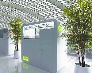 Sleep Box,睡眠盒子,这是为那些想在机场睡个好觉的人设计的。包厢面积只有2.8平方米,高2.3米,床占到房间近一半。房间内有通风系统、液晶电视、无线上网、电源插座和行李空间,还装有除菌石英灯,在每位住客离开后进行消毒杀菌。房租实时计算,从15分钟到几小时不等。