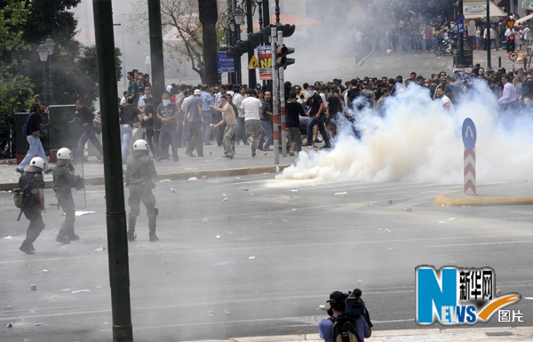 大约10万希腊民众5日走上街头,抗议政府的紧缩政策。这是今年以来最大规模的一次抗议活动。一些无政府主义者与警方发生冲突,他们向警察投掷燃烧瓶,同时将燃烧瓶投向路边的建筑物、汽车和垃圾桶。警察则施放催泪弹予以还击,雅典市中心一片混乱。