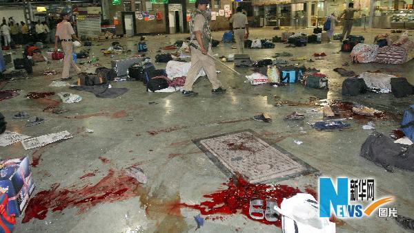 这是2008年11月26日拍摄的印度孟买CST火车站的恐怖袭击现场。新华社/法新