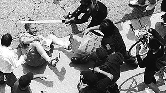 4月17日,美国白人至上主义者在洛杉矶示威游行时,遭群众讨伐