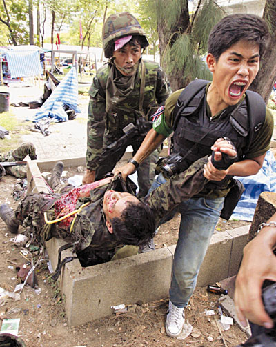 据香港《文汇报》报道,泰国军方清场与红衫军激战,曼谷惨成战场,国际人权组织“人权观察”20日指摘双方严重侵犯人权,批评红衫军射杀记者,又以儿童作为人盾,行径应遭谴责。