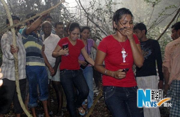 5月22日,在印度南部卡纳塔克邦门格洛尔市的客机失事现场附近,当地居民表情悲痛。新华社/路透