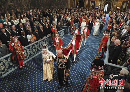 5月25日,伦敦,英国新一届议会举行开幕大典。英国女王伊丽莎白二世出席了开幕大典。英国新一届议会举行开幕大典 女王出席