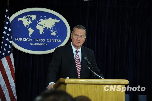 美国白宫27日公布了奥巴马政府的“国家安全战略报告”。该报告放弃了布什政府“反恐战争”的说法,扬弃了布什政府时期的“先发制人”的战略。图为白宫国家安全顾问詹姆斯·琼斯当日就新的国家安全战略举行记者会。完 中新社发 吴庆才 摄