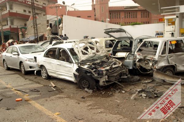 这是2010年5月28日在巴基斯坦东部城市拉合尔拍摄的在袭击中被损毁的车辆。 新华社发(贾米勒·艾哈迈德摄)