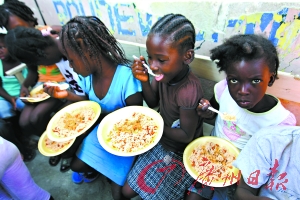 海地地震发生后,孩子们在一家慈善组织开设的餐馆里免费用餐。