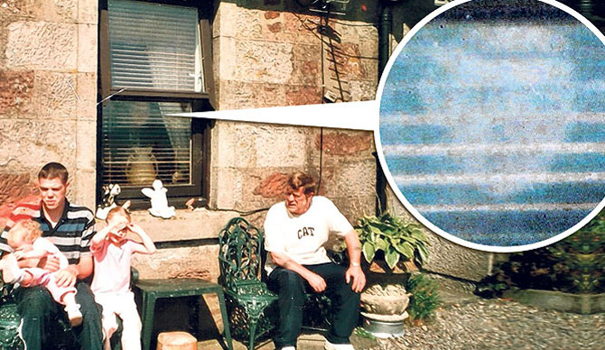64岁的英国老人亨利·罗斯近日与儿子和两个孙女拍了一张合影。照片洗出来后,上面原本应该空无一人的百叶窗内居然有一个神秘的鬼影在向外窥视。毛骨悚然的一家人一起仔细研究了鬼影的外形,震惊地发现它无论容貌还是衣着都与42年前结婚时的罗斯几乎一模一样。