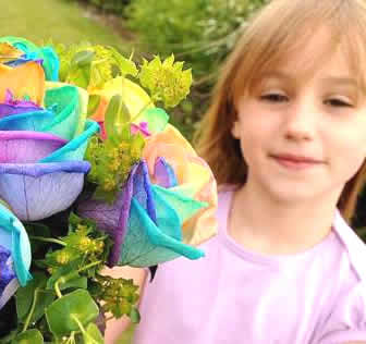创出这种彩虹玫瑰的是荷兰花商彼得.范德威尔肯。他购买长茎的米白色Vendela玫瑰,将其染色,然后分销到世界各地。彩虹玫瑰除了色彩艳丽,还能散发出香甜味,存放时间和普通玫瑰一样,但叶子会较快枯萎。