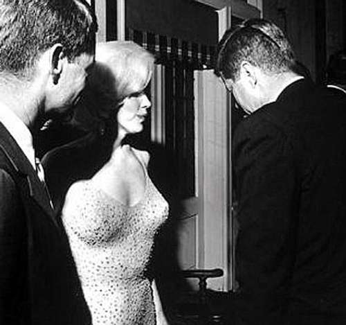 1962年5月19日,为庆祝肯尼迪总统即将到来的生日,玛丽莲·梦露身穿缀满亮片的露背晚礼服,在纽约麦迪逊花园广场献唱了一首甜蜜的《总统先生,生日快乐》。演唱结束后,白宫摄影师塞西尔·斯托顿抓拍到一张玛丽莲梦露与肯尼迪兄弟的合影。