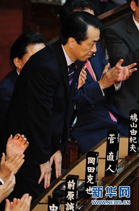 6月4日,日本执政的民主党新代表(党首)菅直人在国会参议院首相指名选举中当选新一任首相。这是菅直人当日早些时候在众议院获得首相提名后致意。新华社记者季春鹏摄 日本新当选首相菅直人4日晚在民主党党部对媒体表示,将调整财政投入的重点,把有限的财源投放到启动需求、扩大就业等重点领域。他相信,只要确保日本财政的可持续性,日本经济就将走上“成长的轨道”。