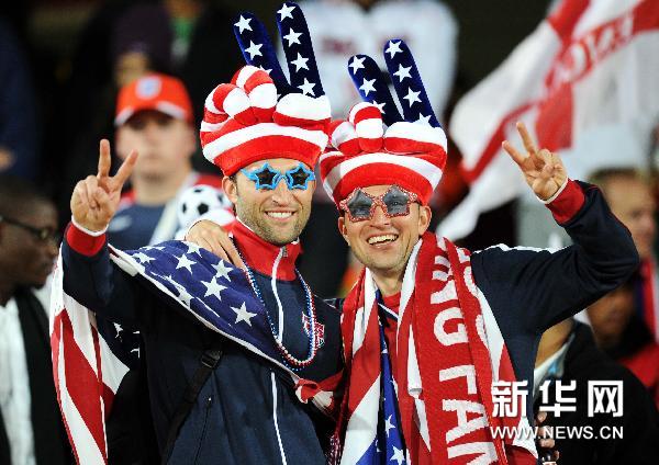 6月12日,两名美国队球迷在开赛前。当日,在勒斯滕堡举行的2010年南非世界杯C组比赛中,英格兰队对阵美国队。 新华社记者郭勇摄