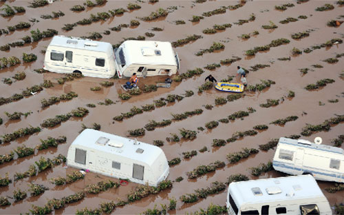 在拥有4万人口的德拉吉尼昂,暴雨导致泥水淹没该城镇,造成11人死亡。许多车子被洪水冲走,叠成一堆,不少渡假屋和营地则被洪水破坏。