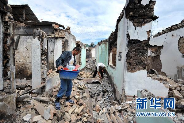 2010年6月17日 吉尔吉斯斯坦冲突导致数十万人被迫离开家园 6月16日,在吉尔吉斯斯坦南部奥什附近的一个村庄,人们在被毁坏的建筑内寻找自己的财物。联合国官员17日说,吉尔吉斯斯坦冲突共导致至少40万人被迫离开家园。 新华社/法新