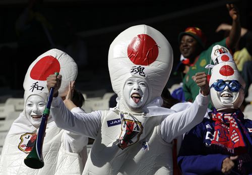 不过,除了这些美女,世界杯赛场的女球迷也以一些令人匪夷所思的造型出现在公众面前。报道指出,以日本女球迷为例,全身“裹粽子”般包得紧紧地,如同将相扑的服装穿在身上,令人看不懂她们追求的效果是什么。看上去,她们的造型像是“安全套”,又像是保龄球瓶,和足球赛仿佛搭不上调。不过,唯一能确定的是,她们在冬天的南非应该不会受凉。