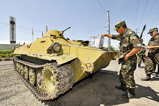 吉尔吉斯斯坦士兵投票,投票箱就放在坦克上。