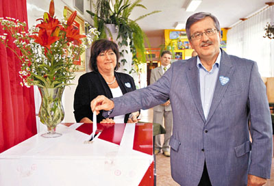 6月20日,波兰举行总统选举首轮投票,共有10位候选人参加总统职位角逐。其中,科莫罗夫斯基的得票率为41.54%,卡钦斯基的得票率为36.46%。波兰选举法规定,首轮投票如果没有候选人得票过半数,得票数前两名的候选人将在两周后进入第二轮角逐。第二轮得票多者当选波兰总统。