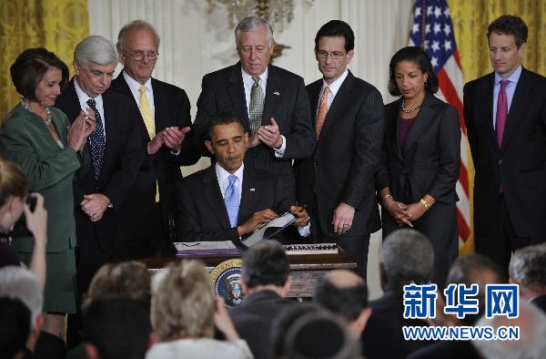7月1日,在美国首都华盛顿白宫东厅,美国总统奥巴马(中)签署对伊朗制裁法案。这项对伊朗实施单方面制裁的法案6月24日由国会参议院和众议院表决通过,需获总统签字生效。 新华社记者 张军 摄