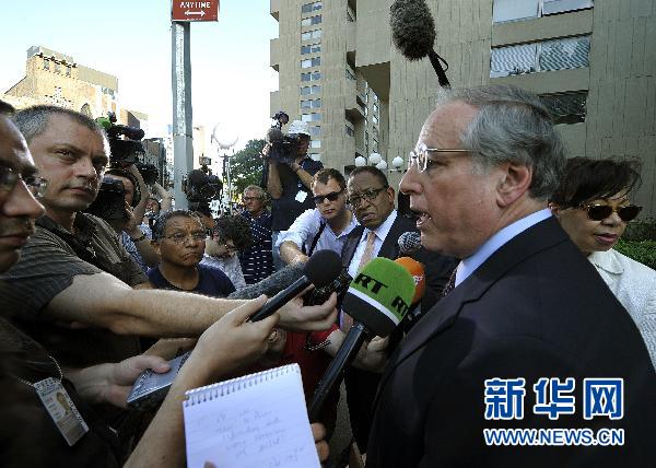 7月8日,在美国纽约曼哈顿联邦法院,俄罗斯间谍嫌疑人安·查普曼的辩护律师罗伯特·博姆接受记者采访。 俄罗斯克里姆林宫9日说,俄总统德米特里·梅德韦杰夫签署命令,释放4名美国间谍及家属,换取遭美国逮捕的10名俄罗斯间谍嫌疑人。 新华社/法新