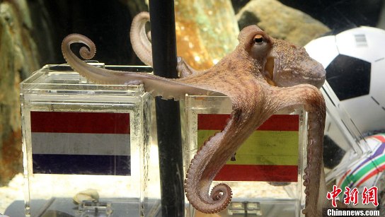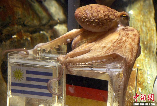 章鱼“保罗”绝对是本届世界杯赛的大明星,对德国队的比赛的竞猜他已经是屡试不爽。除了两年前尚处在幼年的它对欧洲杯预测6中其5,猜错了决赛外,其他的比赛,包括本届世界杯赛,它猜中了13场比赛中的12场!