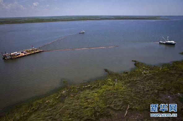 7月8日,在美国路易斯安那州斯莱德尔附近的庞恰特雷恩湖,工作船收集泄漏原油。美国得克萨斯州官员5日证实,该州东部海滩发现来自墨西哥湾漏油油井的油球。这表明,墨西哥湾泄漏的原油已扩散至美国墨西哥湾沿岸所有5个州。当地媒体报道说,从东部的佛罗里达到西部的得克萨斯,报告发现油污的范围已横跨近900公里。新华社/路透