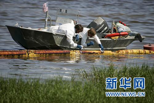 7月8日,在美国密西西比州韦夫兰,工作人员清理泄漏原油。新华社/路透