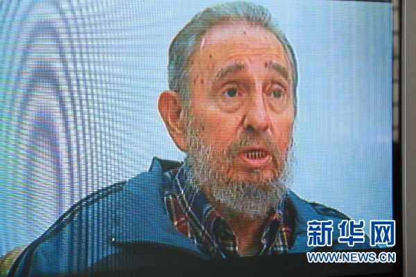 7月12日,古巴革命领导人菲德尔·卡斯特罗在哈瓦那接受古巴国家电视台“圆桌”访谈节目的直播采访,谈了他对当今朝鲜半岛和中东紧张局势的看法。新华社记者刘彤摄