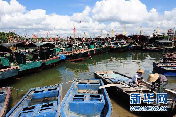 7月14日,在海南琼海市潭门港,大批渔船返港避风。新华社发(蒙钟德 摄)