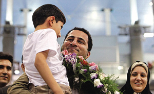 阿米里回到德黑兰后,抱起分别一年多的儿子。