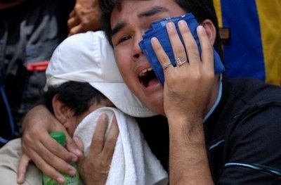7月15日,在台风中遇难者的家属失声痛哭