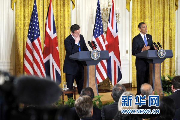 2010年7月20日奥巴马会见英国首相卡梅伦7月20日,在美国首都华盛顿白宫东厅,美国总统奥巴马与到访的英国首相卡梅伦在会见后出席联合新闻发布会。