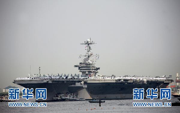 美国国防部2010年7月19日宣布,美国海军“乔治·华盛顿”号航空母舰将于7月21日至25日访问韩国,并将参加于7月25日至28日在韩国东部海域(即日本海)举行的美韩联合军事演习。这是2008年9月25日在日本横须贺拍摄的美国“乔治·华盛顿”号航空母舰的资料照片。 新华社记者任正来摄