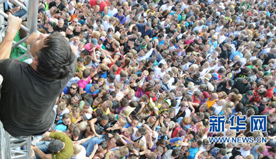 7月24日,在德国西部杜伊斯堡,人们试图爬上栏杆躲避拥挤。当日,杜伊斯堡举行“爱的大游行”电子音乐狂欢节时发生踩踏事件。当地警方说,踩踏事件已造成至少15人死亡,45人受伤。新华社/法新