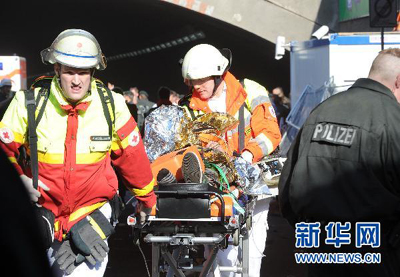 7月24日,在德国西部杜伊斯堡,医护人员在踩踏现场转移伤者。当日,杜伊斯堡举行“爱的大游行”电子音乐狂欢节时发生踩踏事件。当地警方说,踩踏事件已造成至少15人死亡,45人受伤。新华社发