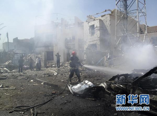 7月26日,消防员在伊拉克首都发生爆炸的地点灭火。据法新社报道,位于伊拉克首都巴格达的阿拉伯卫视台办公楼当天遭汽车炸弹袭击,造成至少4人死亡。 新华社/路透