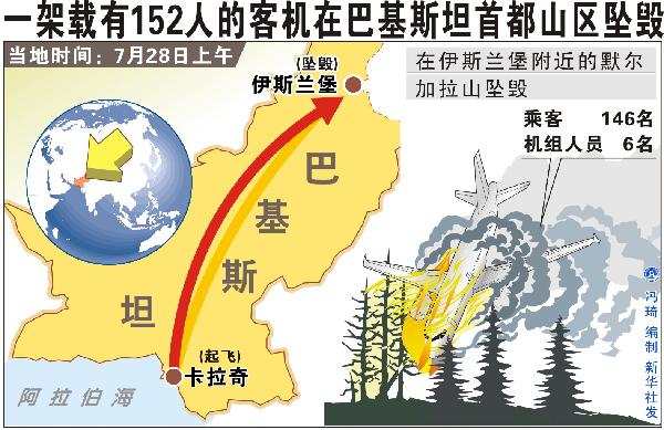 图表:一架载有152人的客机在巴基斯坦首都山区坠毁 新华社发